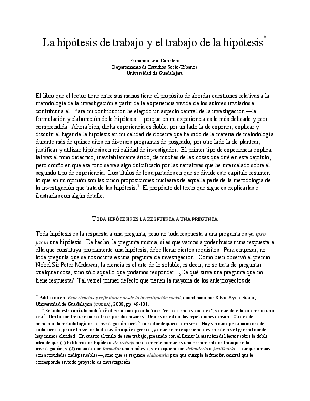 La Hipótesis De Trabajo Y El Trabajo De La Hipótesis | Fernando Leal - Academia.edu