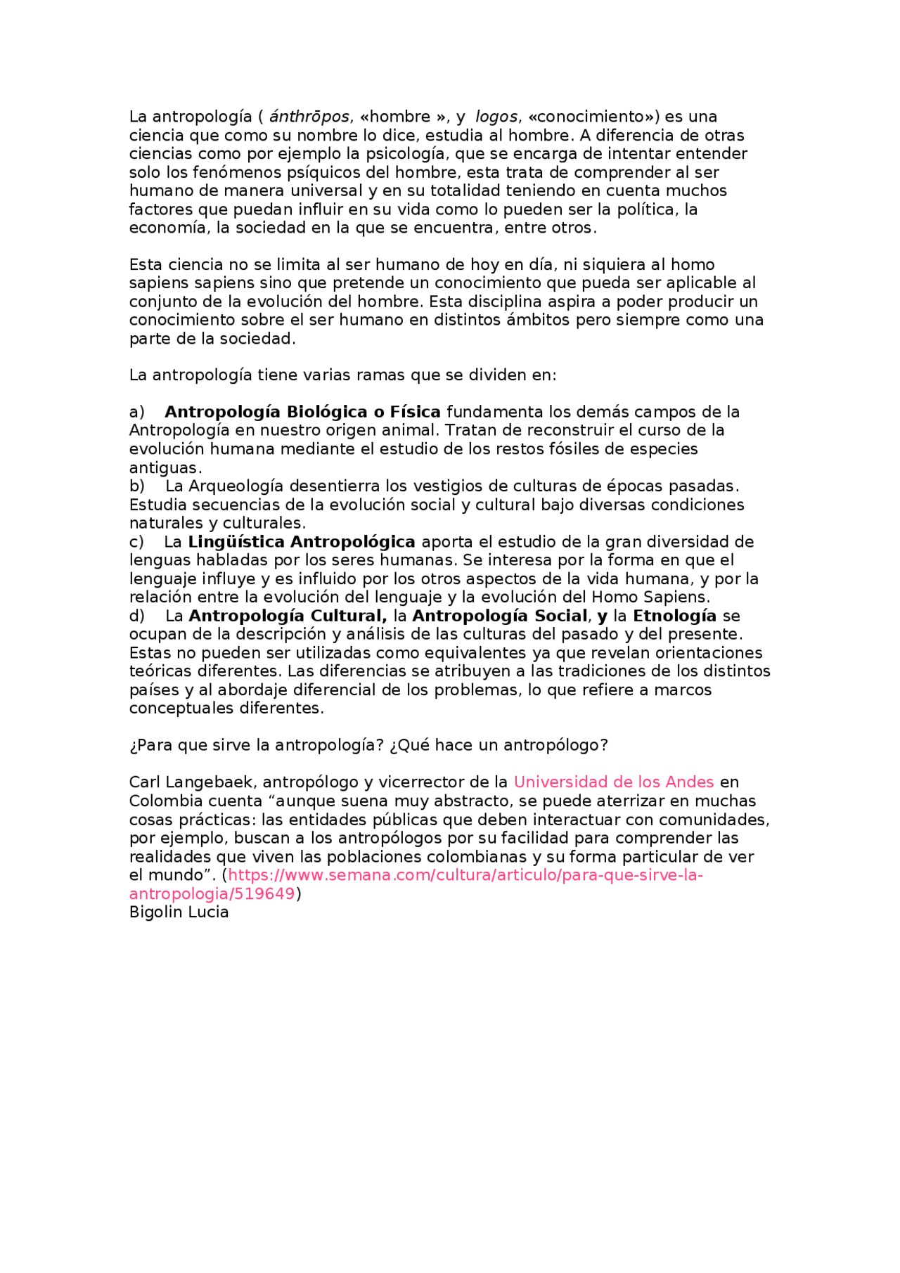 La antropología combina estas disciplinas en un estudio holístico y analizando su lugar en el mundo que nos rodea. C antropología, estudio de los seres humanos desde una perspectiva biológica, social y humanista. Ideas, música, libros, deporte, noticias en general y todo lo que se le ocurra.