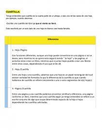 Por lo tanto, un impreso nunca puede tener páginas impares. En otras palabras, cada hoja contiene dos páginas. Unauna hoja es utilizar los dos los dos lados de una página y una página es una parte de un lado osea que una cuartilla es una página la mitad de una página