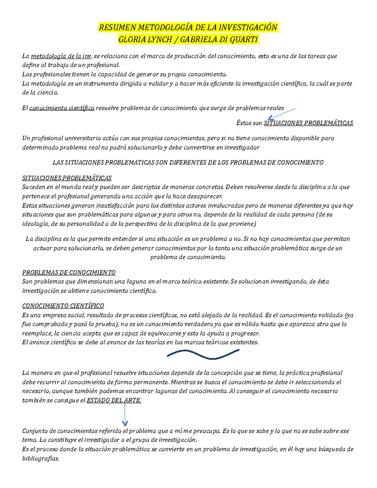 Resumen Metodología De La Investigación - Resumen De La Gloria Lynch Gabriela Di Quarti La De La - Studocu