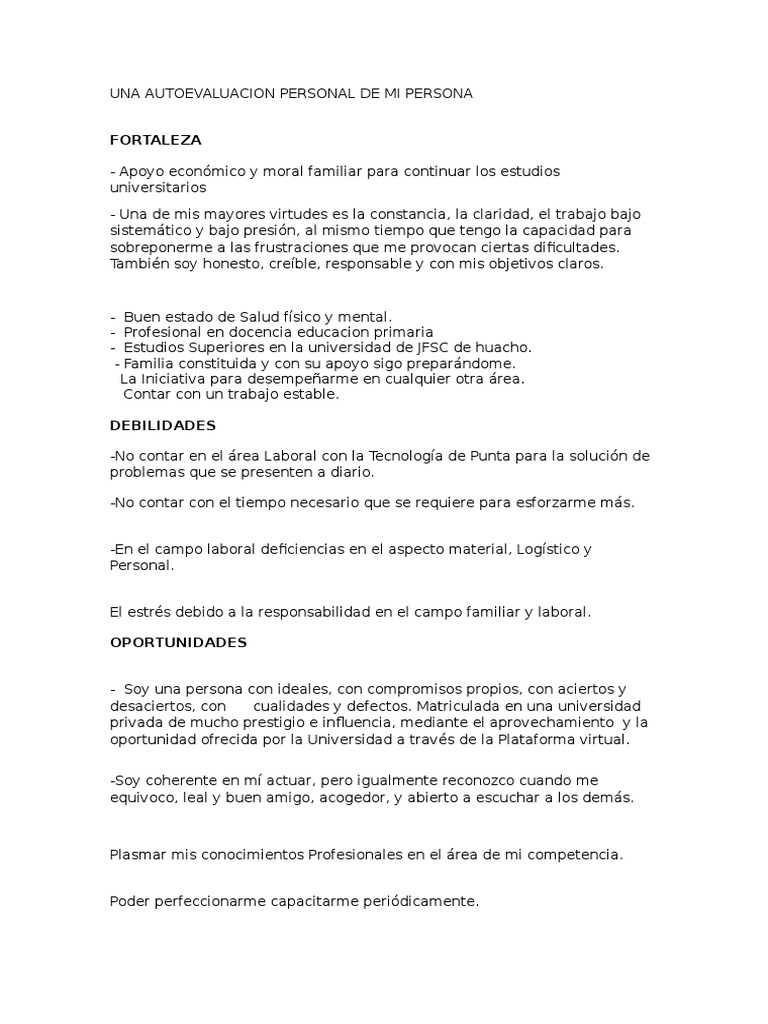 Una Autoevaluacion Personal De Mi Persona | Pdf