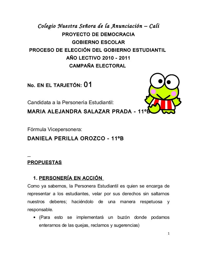 A continuación, se presenta las propuestas de los candidatos del colegio para gobierno escolar. 3 de marzo del 2015 en la explanada principal donde nuestro candidato se dará a conocer y nos presentará sus ideas y propuestas para mejorar nuestra escuela para que así tengas idea sobre lo. Se encontró que de las propuestas que componen el plan de gobierno de federico gutiérrez, 61 tienen que ver con educación;