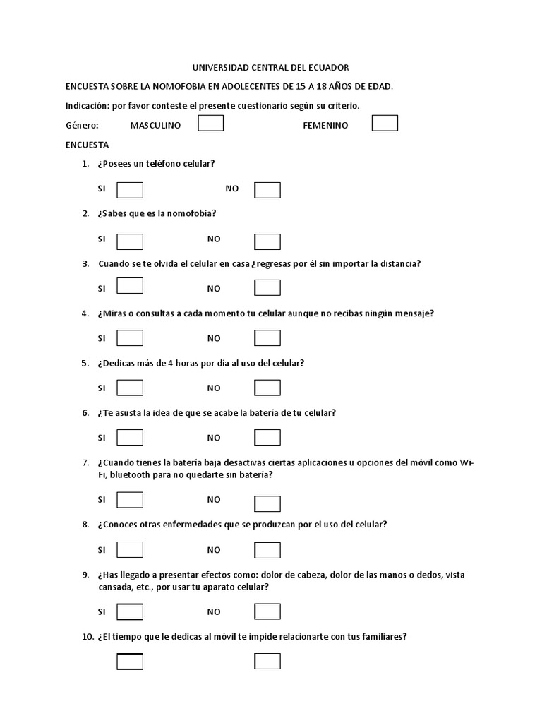 Encuesta De Nomofobia | Pdf | Telefonía Móvil | Science