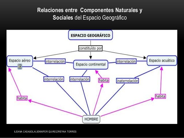Interrelación entre componentes del espacio geográfico: Mientras, el segundo está relacionado con la. Espacio humanizado, continuamente transformado y que se forma de la relación de lo natural y lo social.