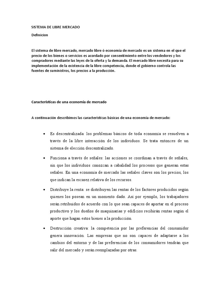 Sistema De Libre Mercado Diapositivas | Pdf | Oferta (Economía) | Mercado (Economía)